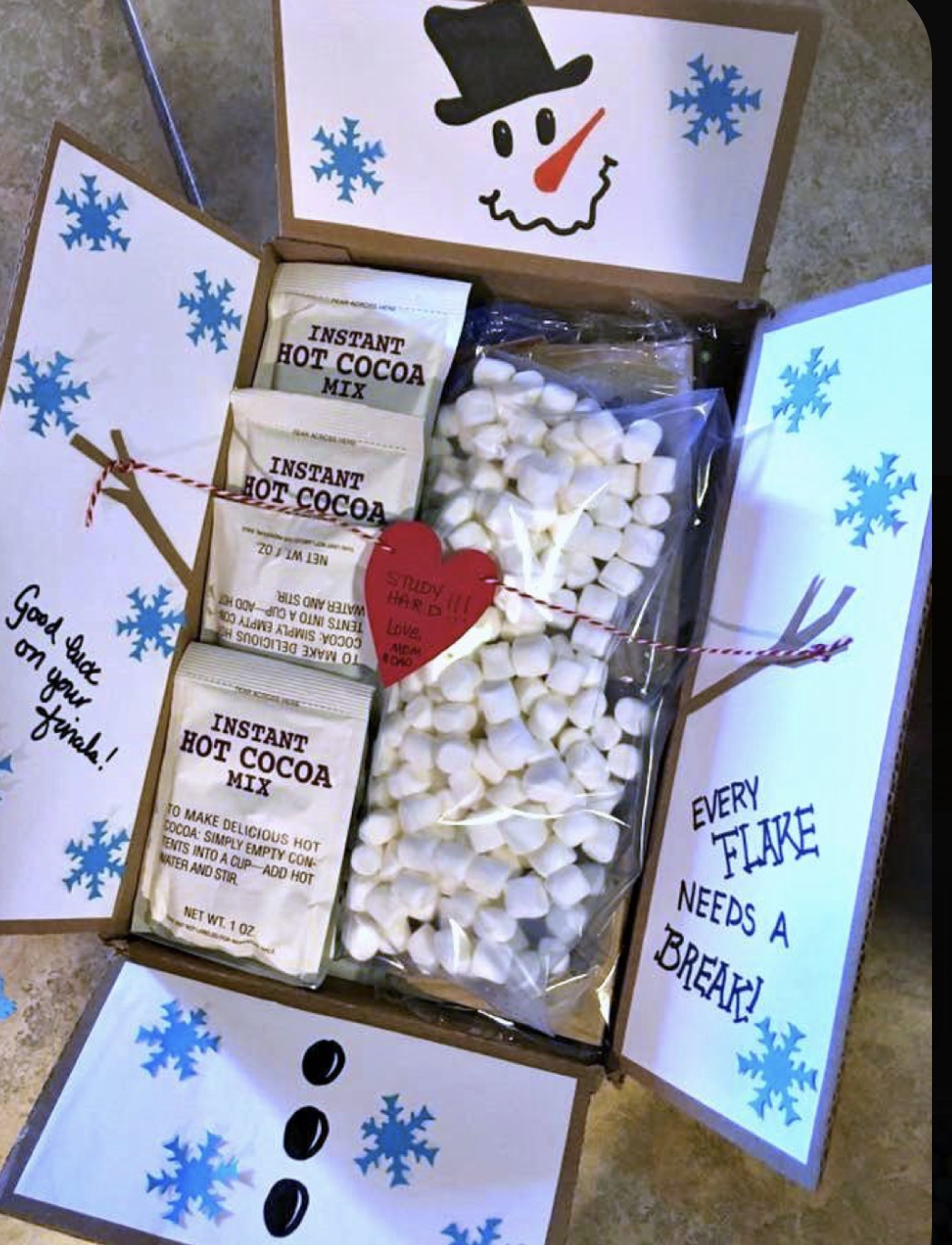 • Photos and notes that show your support and affection. Maybe get a daily tear-off calendar and write an encouraging note on each page.